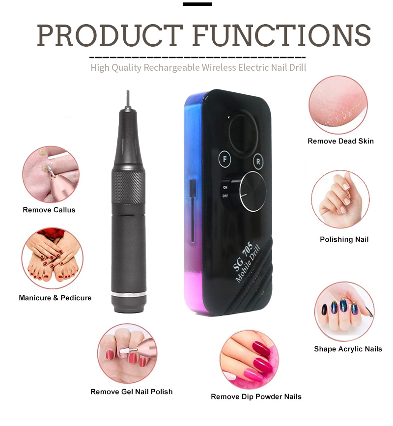 Trapano per unghie ricaricabile a batteria Potente 45 W 40000 giri/min