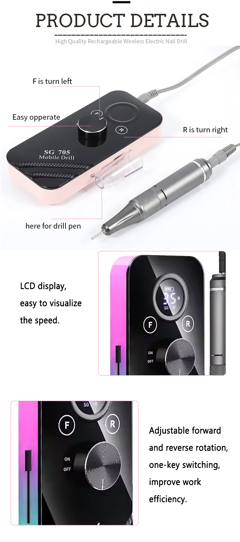 Funzionalità del prodotto e applicazione della file per chiodo elettrica per chiodo per chiodo da 35000 giri
