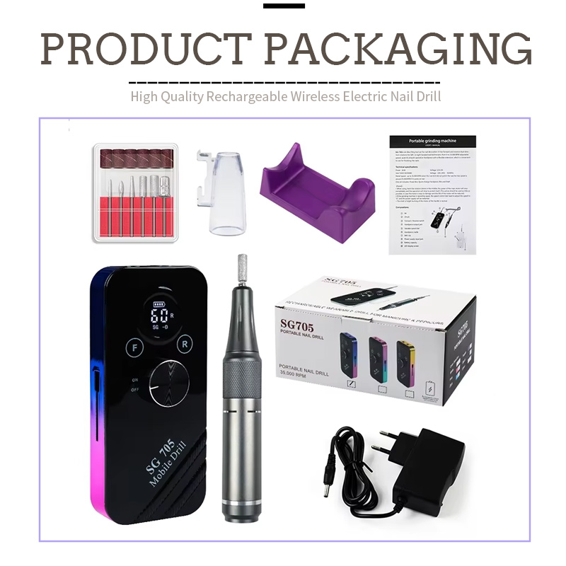Set trapano per unghie ricaricabile con potente manipolo 45w 35000 giri/min