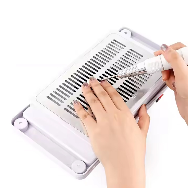 SÌ. ILAspiratore per unghie incorporato da tavolo è specificamente progettato per evitare perdite di polvere. L'elevata potenza di aspirazione di 45 W, combinata con un'efficace sigillatura attorno all'area di aspirazione, garantisce che le particelle di polvere vengano catturate alla fonte anziché ritornare nell'area di lavoro. Durante la limatura di materiali acrilici pesanti, l'unità mantiene prestazioni di aspirazione costanti, mantenendo i piani di lavoro puliti e impedendo alla polvere di disperdersi nell'aria. Per i tecnici che eseguono più servizi acrilici ogni giorno, questa affidabile cattura della polvere riduce significativamente l'esposizione cumulativa alla polvere.