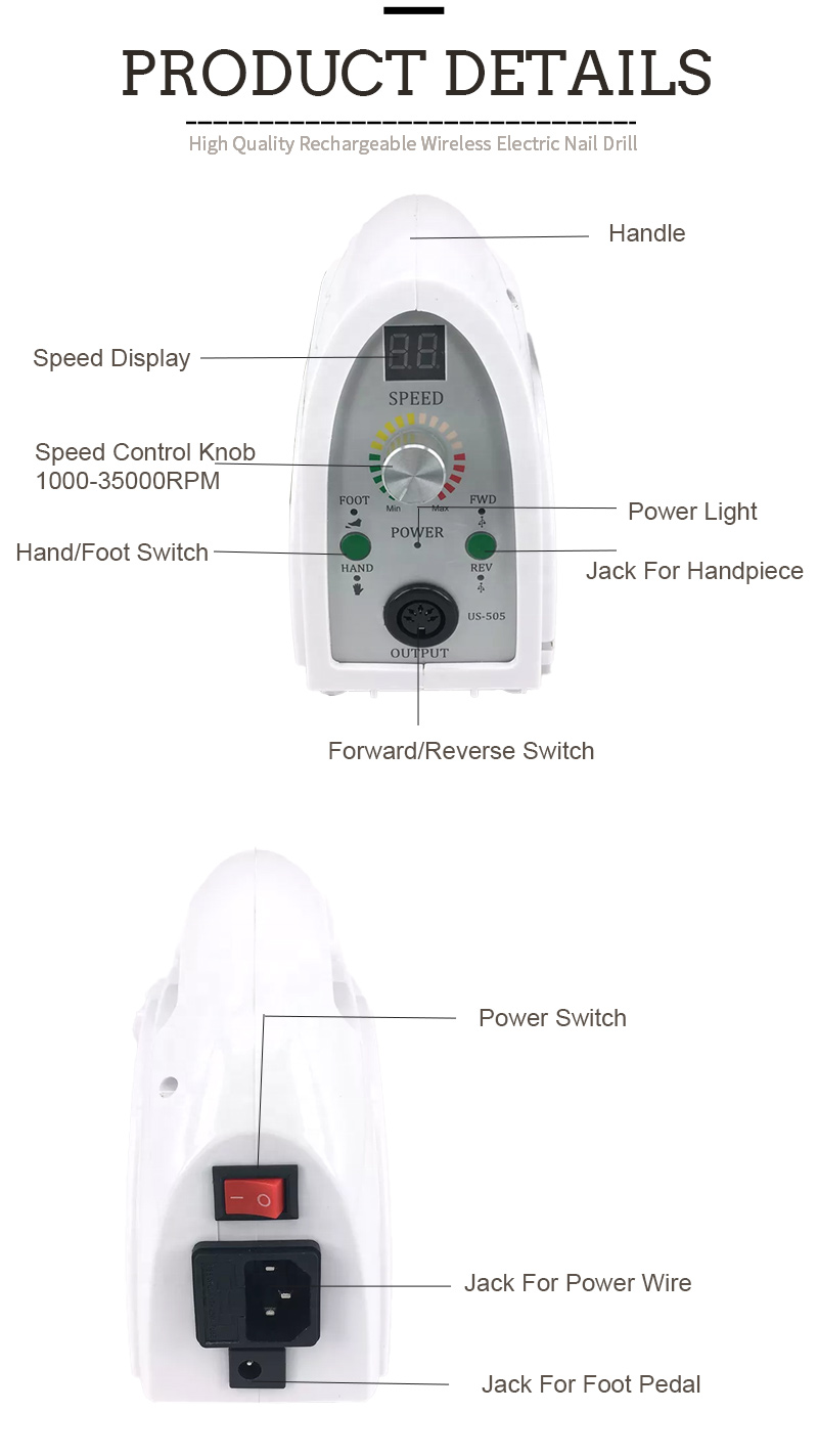 Caratteristiche del prodotto e applicazione della lima per unghie elettrica per rimozione smalto ad alta velocità 702 da 35000 giri/min