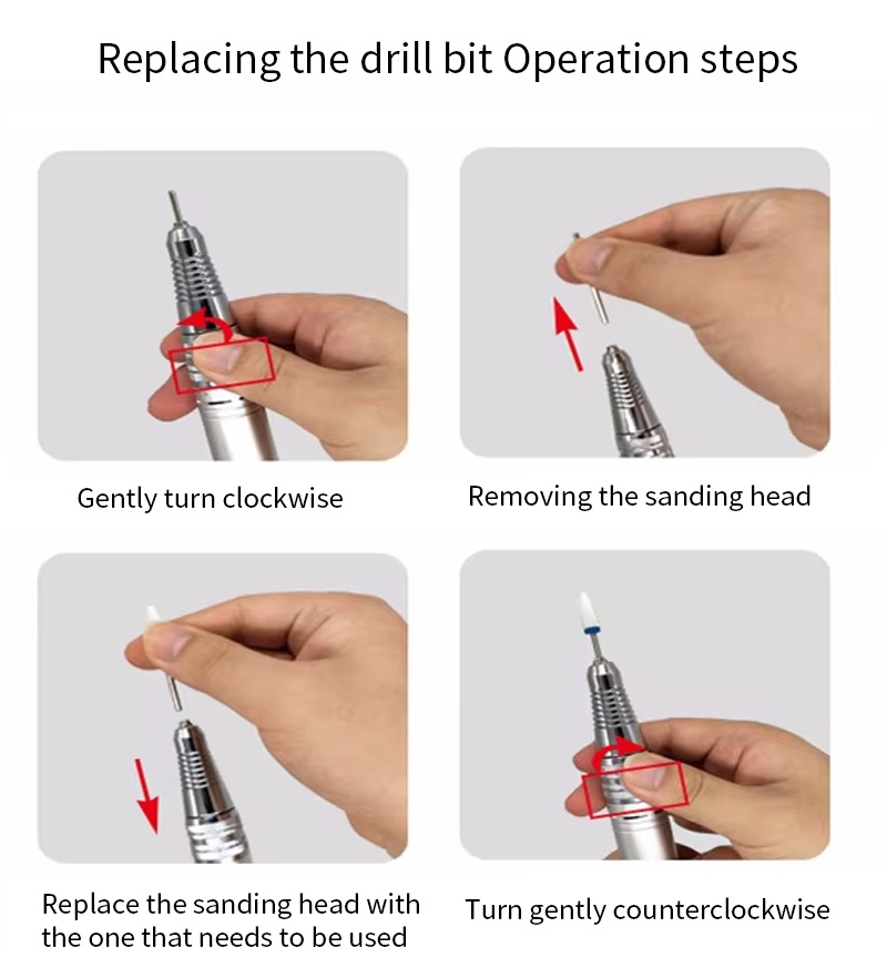 Questo metodo di funzionamento sostitutivo del trapano per unghie e lucidatrice portatile, ovvero plug and pull out, facile e conveniente, la sostituzione può essere utilizzata dopo il completamento.