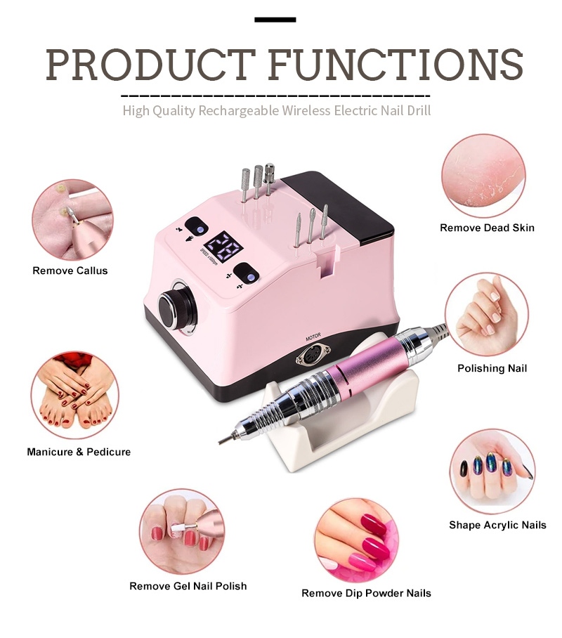 Set trapano per unghie portatile elettrico con potente motore 65w 35000rpm