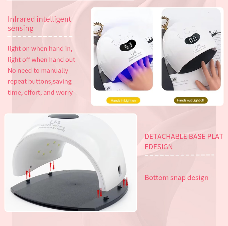 Questa lampada LED per l'asciugatura delle unghie di alta qualità garantisce un'asciugatura uniforme della colla senza restringimento. Le sue doppie sorgenti luminose forniscono un riscaldamento delicato per prevenire lo scolorimento delle mani e l'affaticamento degli occhi, adatte sia alle mani che ai piedi, offrendo risultati di asciugatura straordinariamente rapidi.