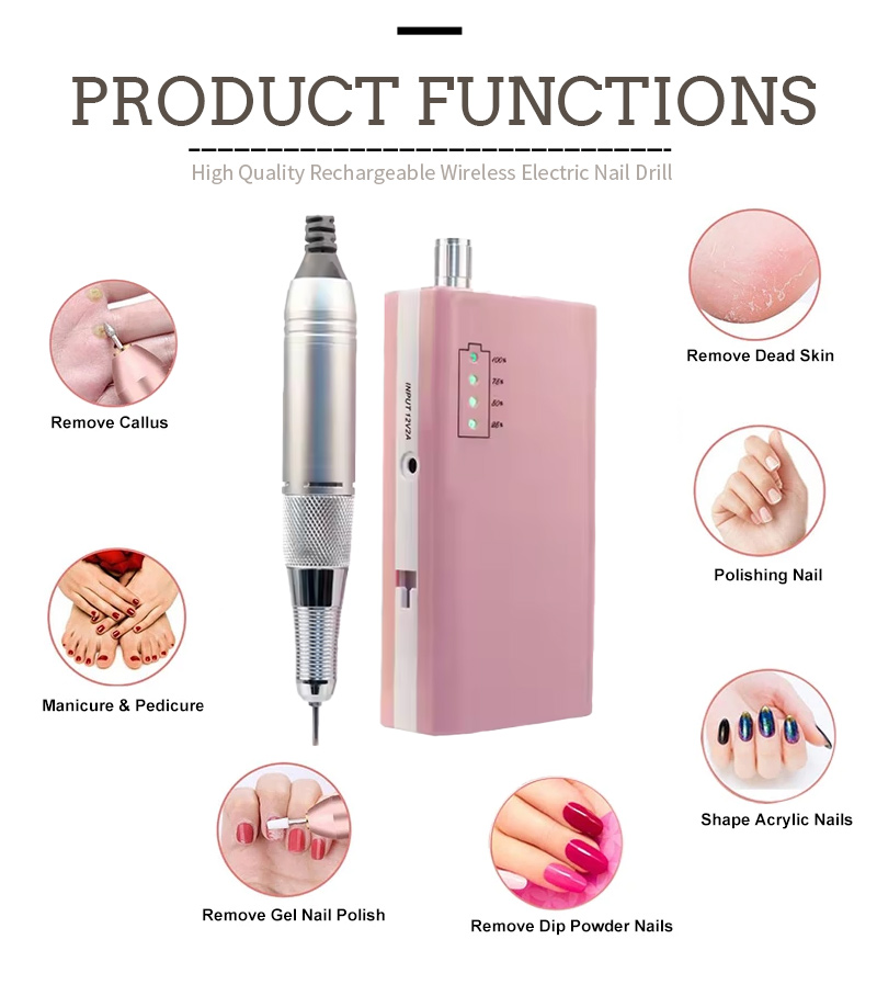 Set Trapano Unghie Cordless Ricaricabile Professionale 45w 40000rpm