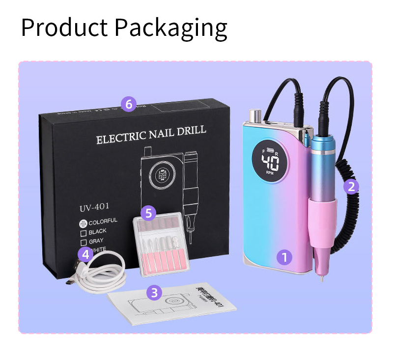 Set trapano per unghie portatile elettrico con potente motore 65w 35000rpm
