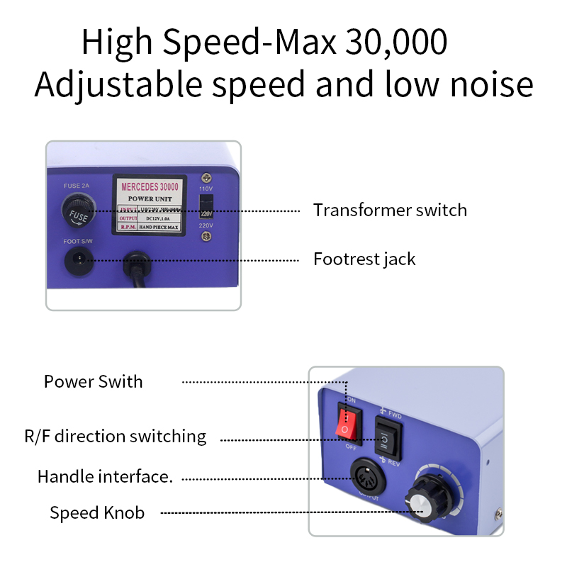 Trapano per unghie elettrico, manipolo non facile da danneggiare, 65 W, 35.000 giri/min