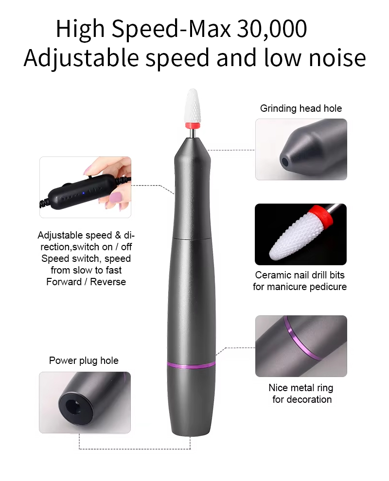 Caratteristiche del prodotto e applicazione del trapano per nail art a forma di penna silenzioso
