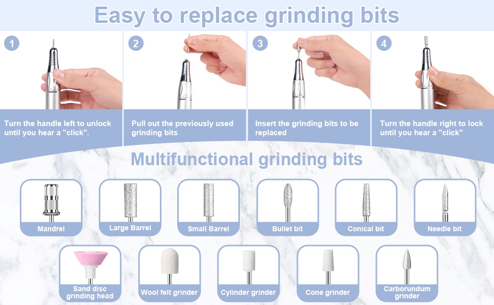 Caratteristiche e applicazione del kit trapano per unghie portatile a basso rumore