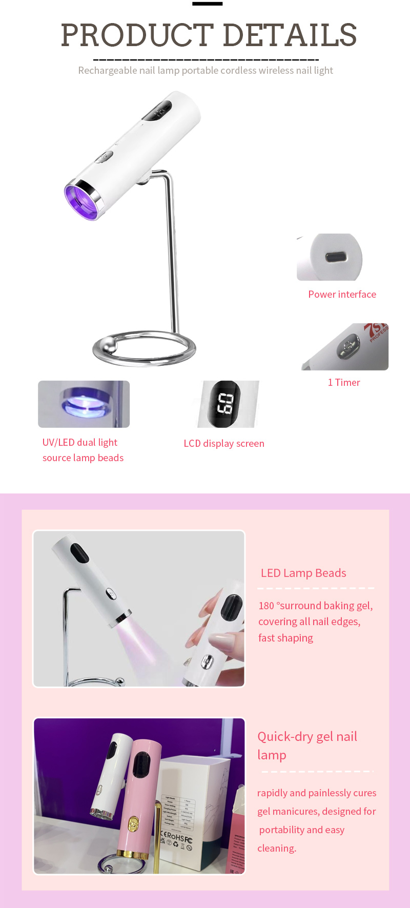 Il prodotto garantisce un'asciugatura uniforme della colla senza ritiro. Le sue doppie sorgenti luminose forniscono un riscaldamento delicato per prevenire lo scolorimento delle mani e l'affaticamento degli occhi, adatte sia alle mani che ai piedi, offrendo risultati di asciugatura straordinariamente rapidi.