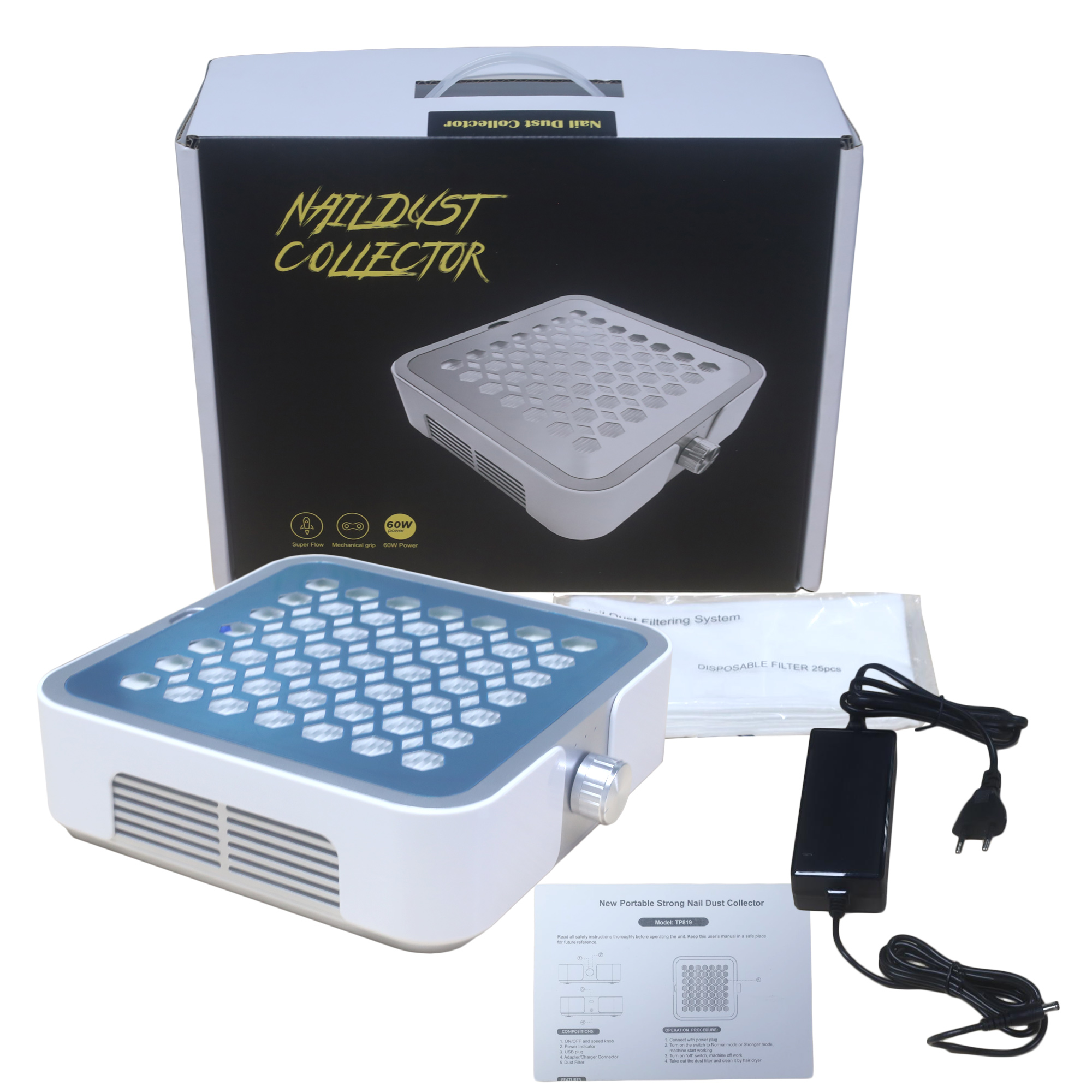 Aspiratore per unghie da 45 W, grande aspirazione con filtro