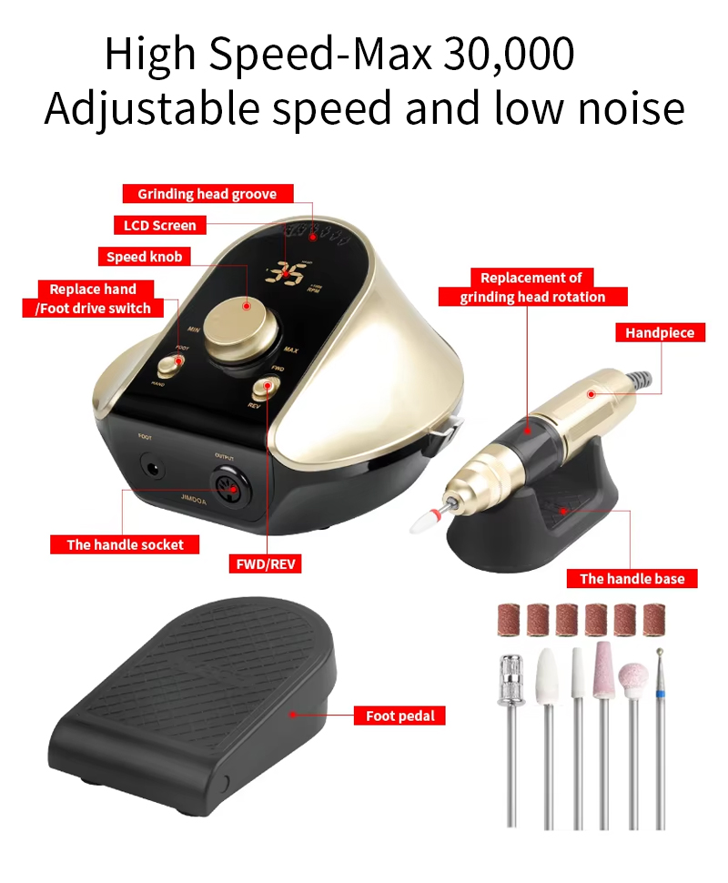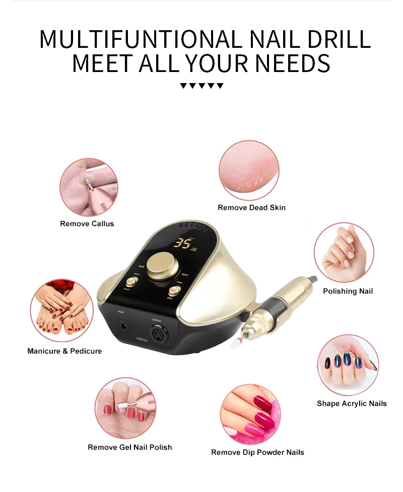 Trapano per unghie elettrico, manipolo non facile da danneggiare, 65 W, 35.000 giri/min