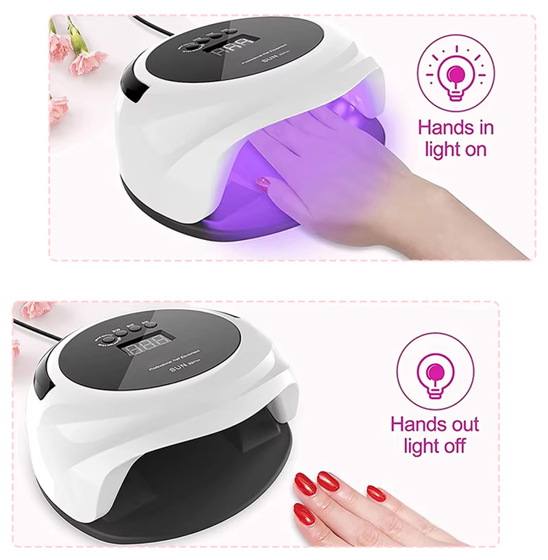 Il prodotto garantisce un'asciugatura uniforme della colla senza ritiro. Le sue doppie sorgenti luminose forniscono un riscaldamento delicato per prevenire lo scolorimento delle mani e l'affaticamento degli occhi, adatte sia alle mani che ai piedi, offrendo risultati di asciugatura straordinariamente rapidi.