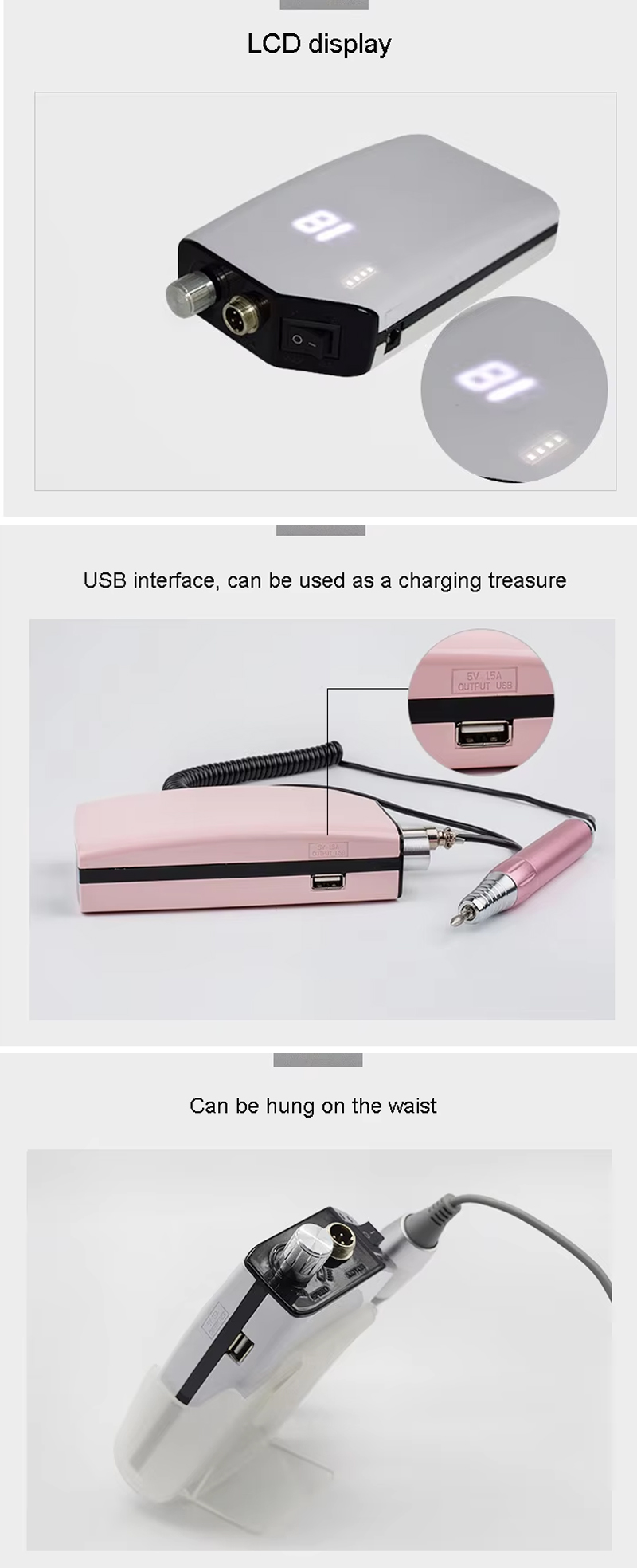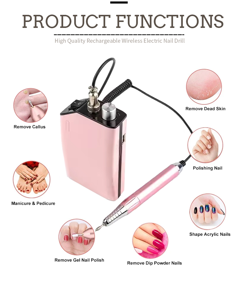 Set trapano per unghie portatile elettrico con potente motore 65w 35000rpm