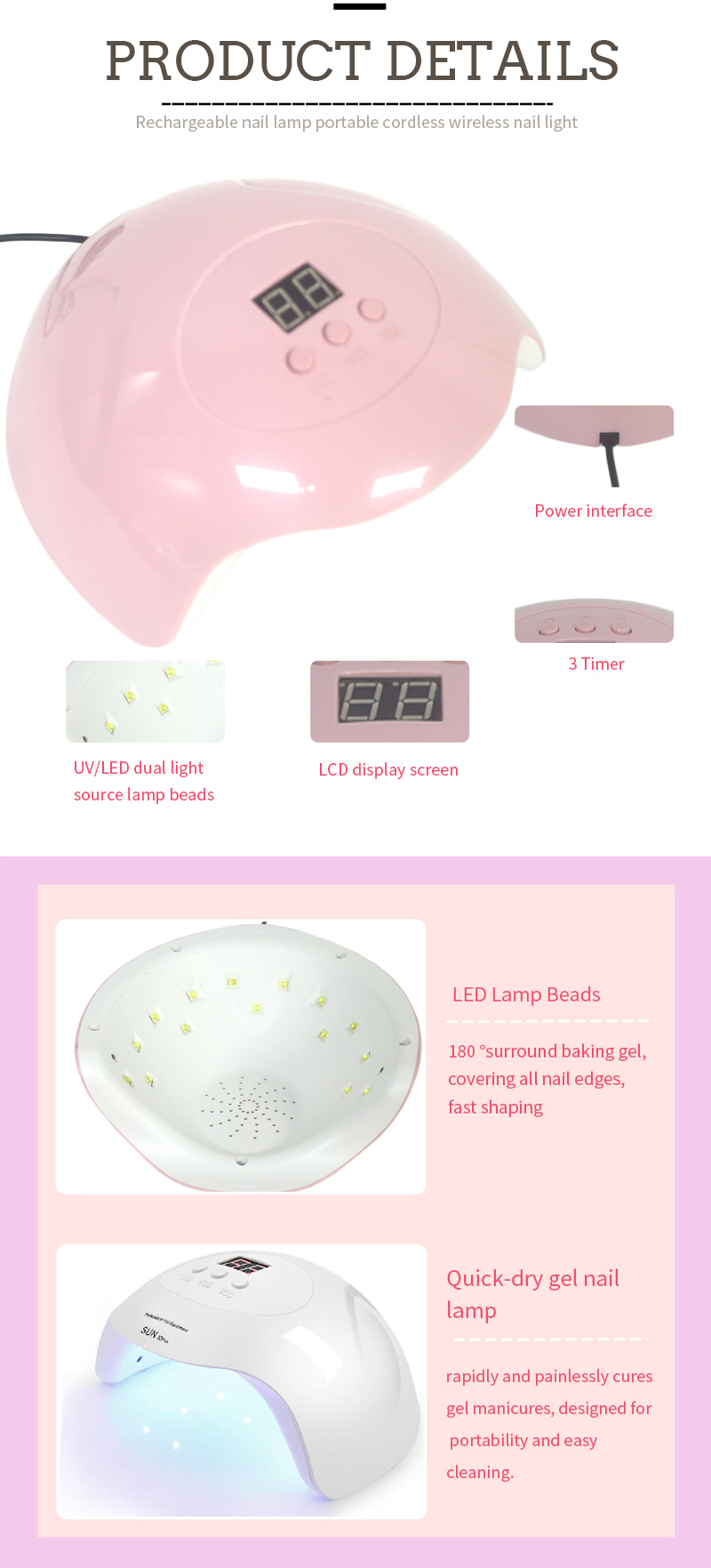 Il prodotto garantisce un'asciugatura uniforme della colla senza ritiro. Le sue doppie sorgenti luminose forniscono un riscaldamento delicato per prevenire lo scolorimento delle mani e l'affaticamento degli occhi, adatto sia alle mani che ai piedi, offrendo risultati di asciugatura straordinariamente rapidi.