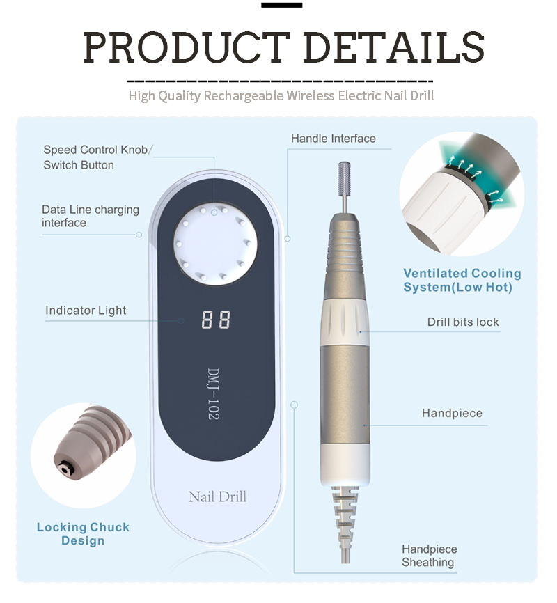 Lima per unghie elettrica ad alta velocità da 35.000 giri/min DMJ-102 per la rimozione dello smalto: caratteristiche e applicazioni