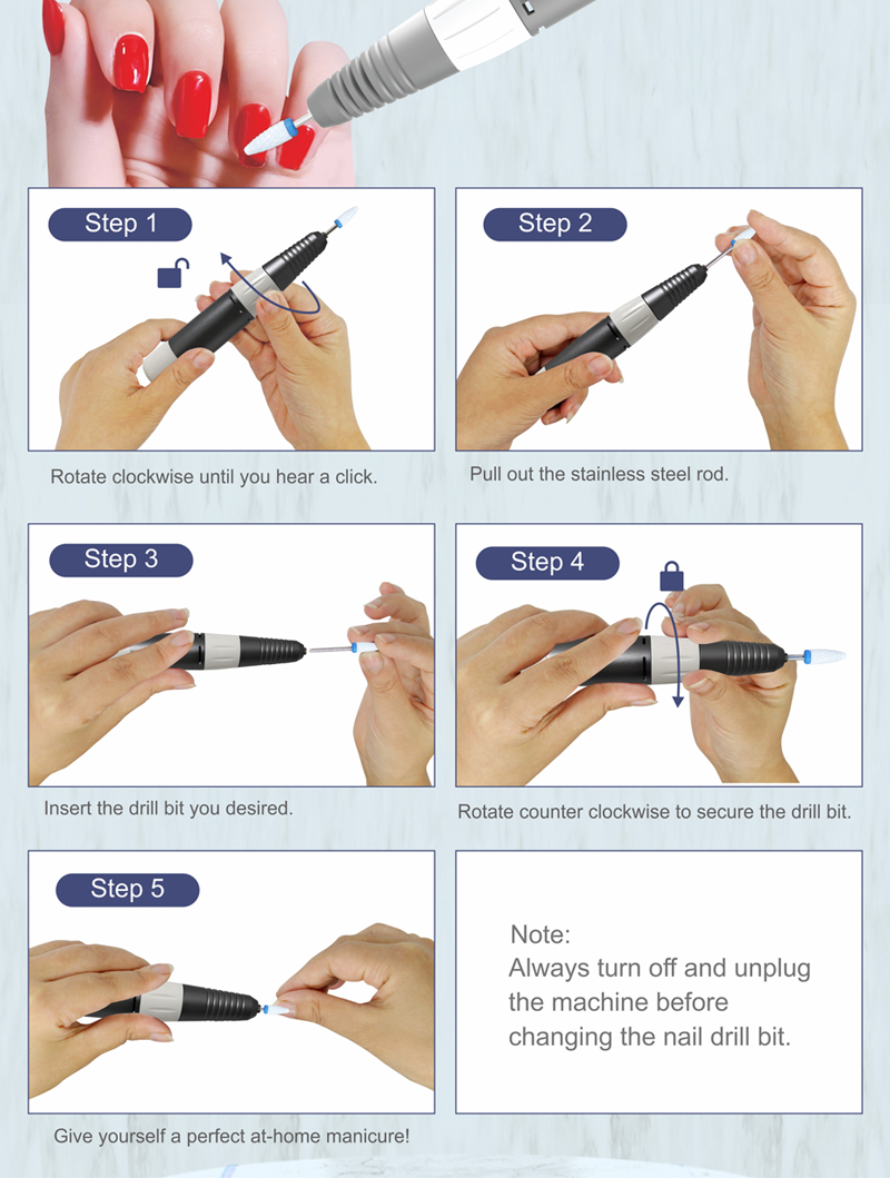 Trapano per unghie elettrico, manipolo non facile da danneggiare, 65 W, 35.000 giri/min