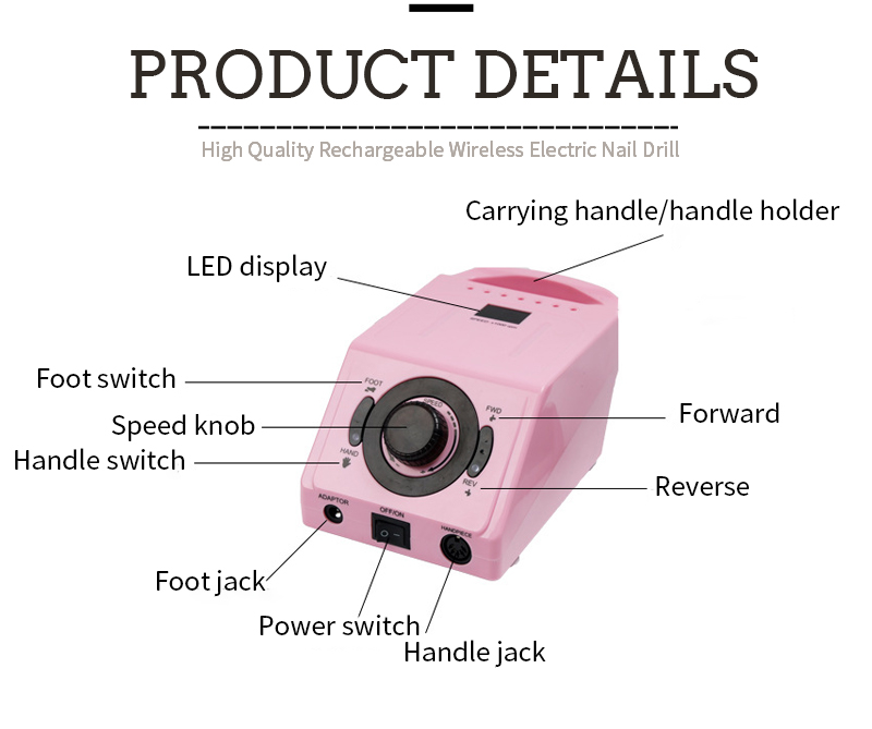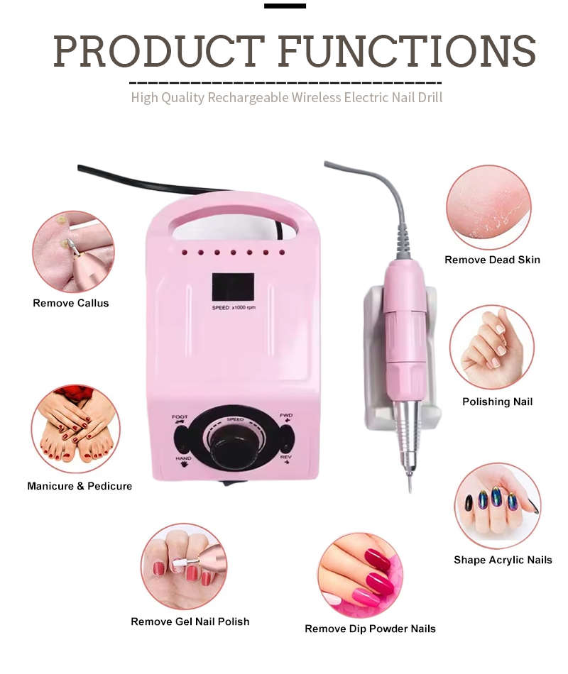 Set trapano per unghie portatile elettrico con potente motore 65w 35000rpm