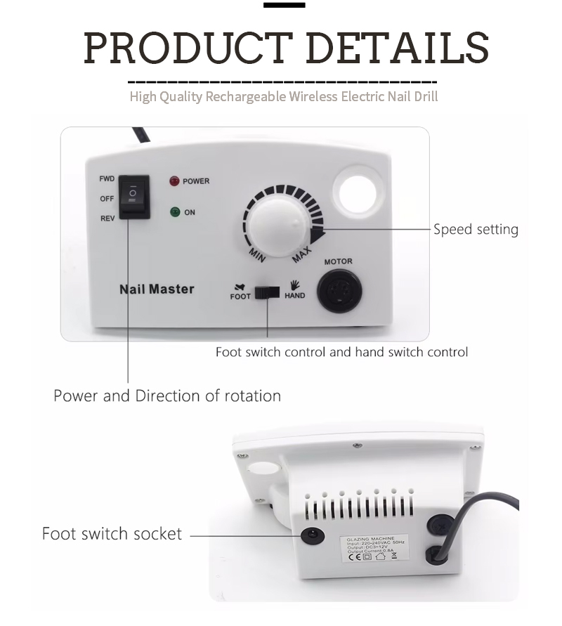 Trapano per unghie elettrico, manipolo non facile da danneggiare, 65 W, 35.000 giri/min